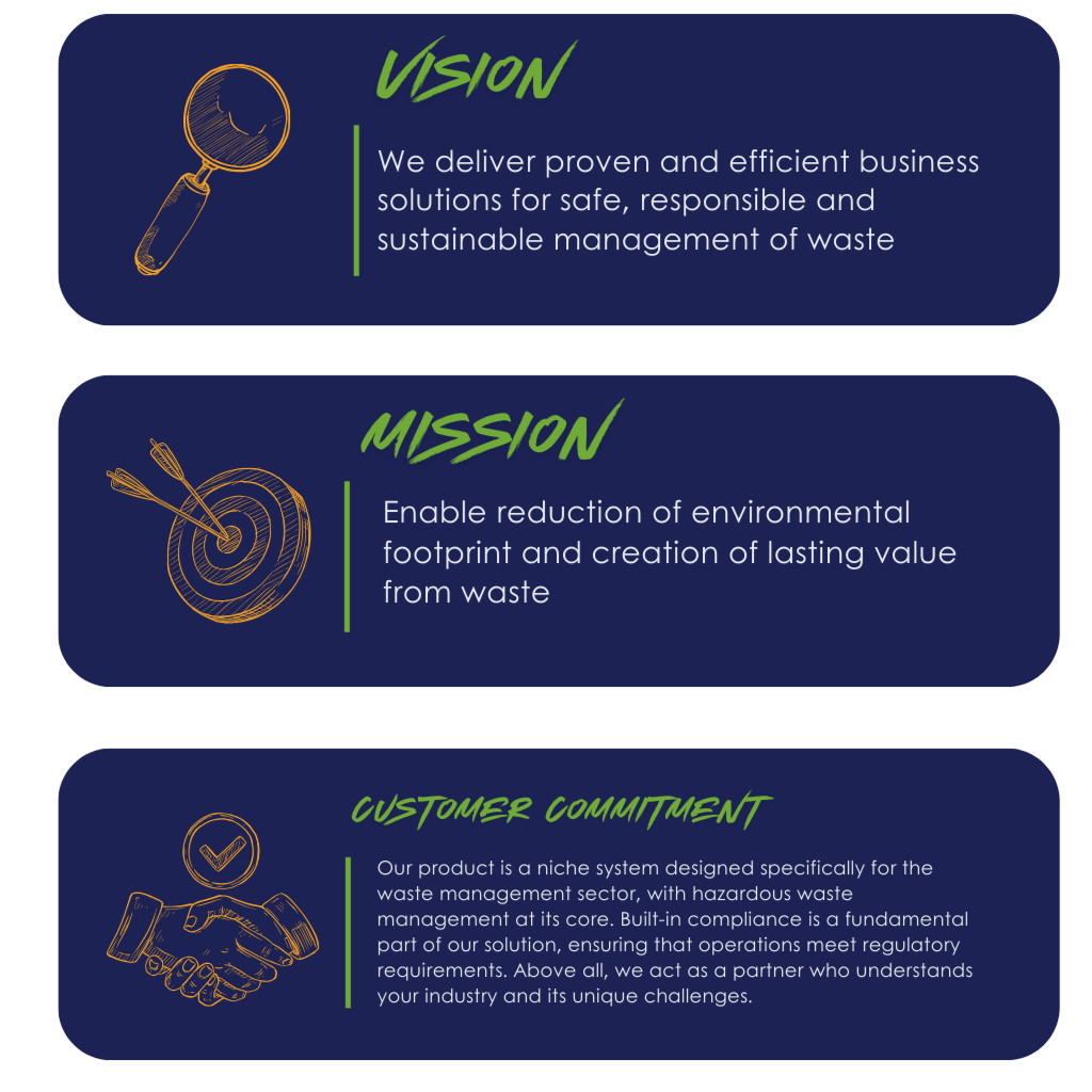 We are a specialized technology partner for the waste management industry. With hazardous waste at the core of our solutions, we provide compliance-driven systems that empower our customers to operate with confidence.